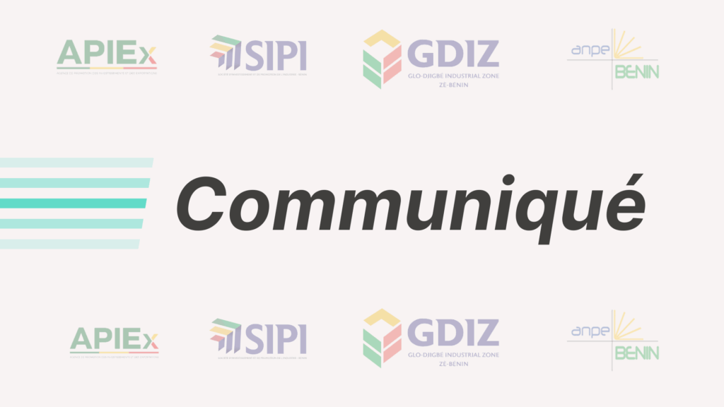Suite à votre présélection pour les 1000 emplois dans le secteur du textile de la Zone industrielle de Glo Djigbé Zè (GDIZ), l’Agence Nationale Pour l’Emploi (ANPE) vous invite à un entretien de sélection dans les lieux (antennes ANPE ou arrondissement) où vous aviez effectué votre inscription.